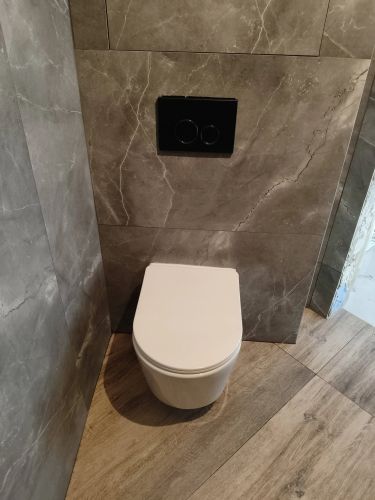 Прикрепим подвесной унитаз к стене, установим сиденье. Работу выполним за 1–2 часа. Будет шумно и пыльно.