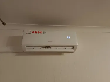 Установим внешний и внутренний блоки, проложим открытую магистраль до 3 м, задуем отверстия монтажной пеной, сделаем короб в помещении, проверим давление фреона и подключим кондиционер.